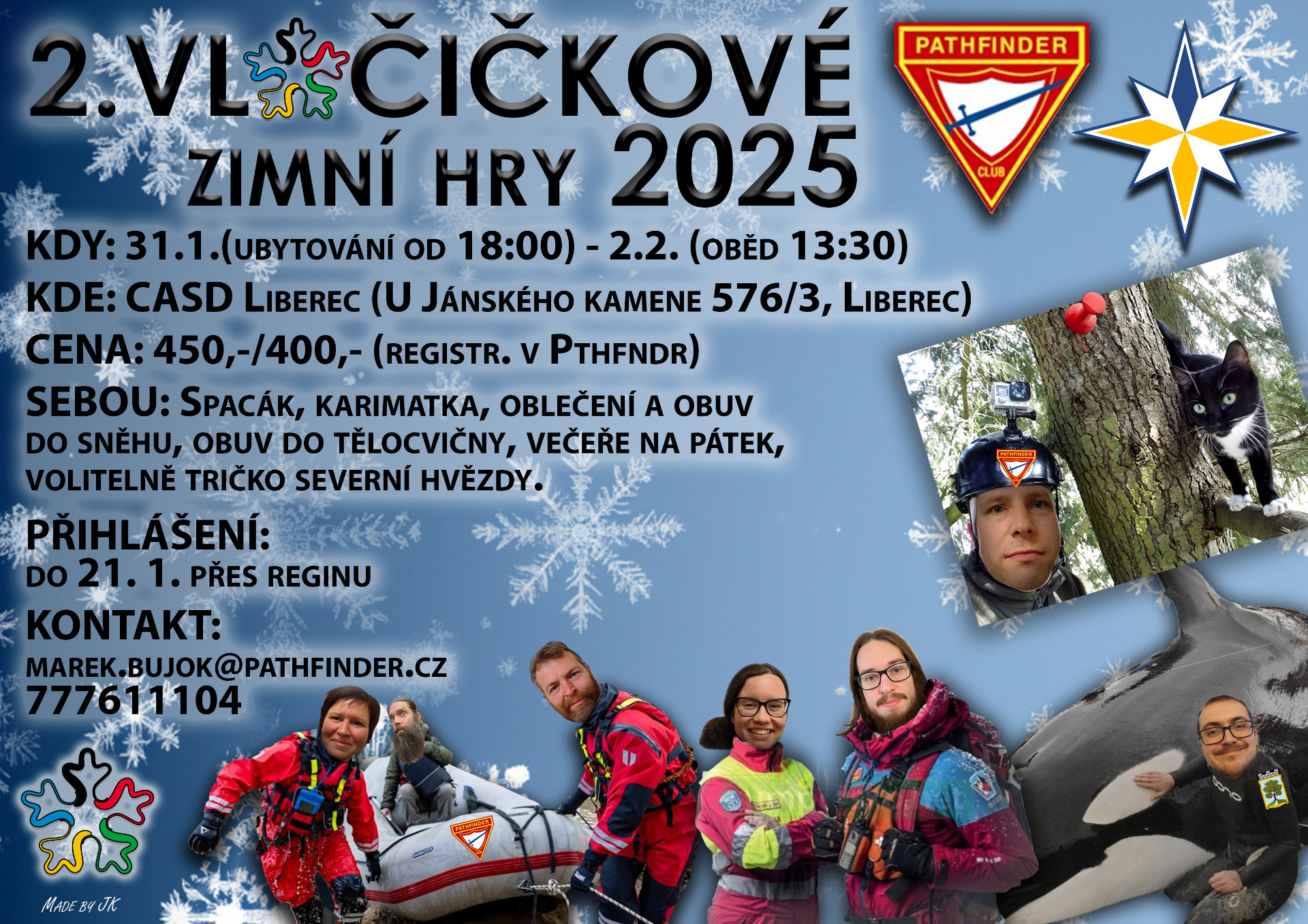 Ahoj!!! Zveme vás na Vločičkové zimní hry do Liberce. Přijďte si užít víkend plný zábavy, soutěží a dobrodružství v pěkném prostředí Jizerských hor. Hlaste se přes Reginu 👍.