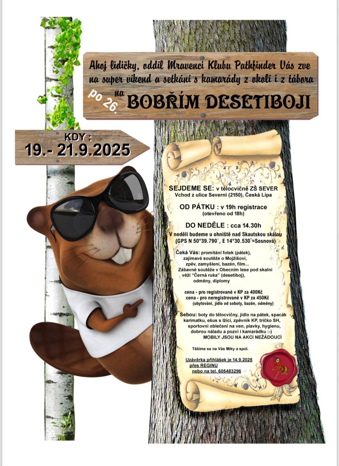 Ahoooj! Blíží se oblíbená akce Bobří desetiboj 🦫 Dorazte do České Lípy, program bude zajímavý. Hlaste se přes Reginu.