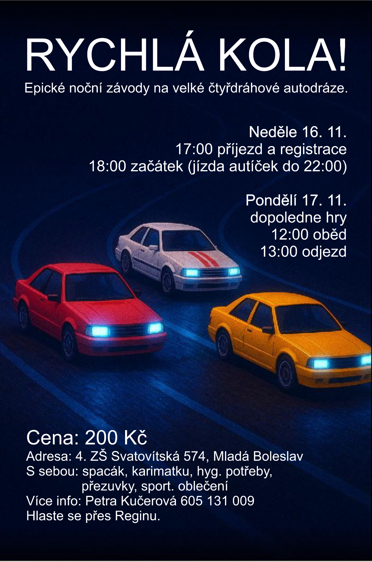 Zveme vás na akci Rychlá kola! Máte rádi závody na autodráze? Tak je tato akce přímo pro vás 🚗😉🤩